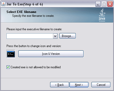Step 6: Select EXE filename to create
